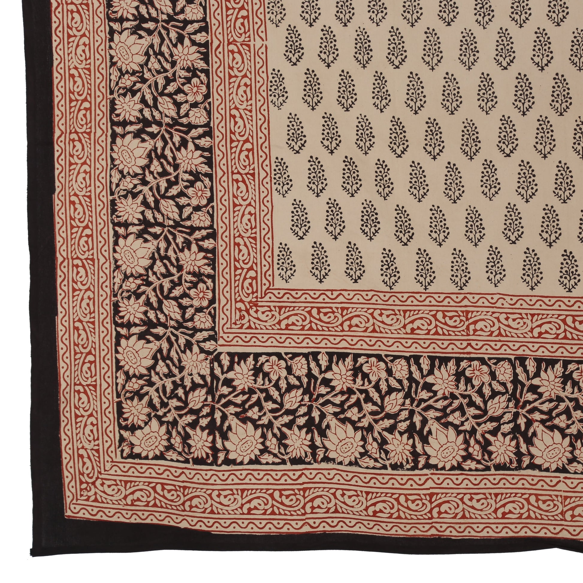 Cotton hand block printed king size bedsheet with pillow covers ( 100 x 108 inches) - Bagru Print