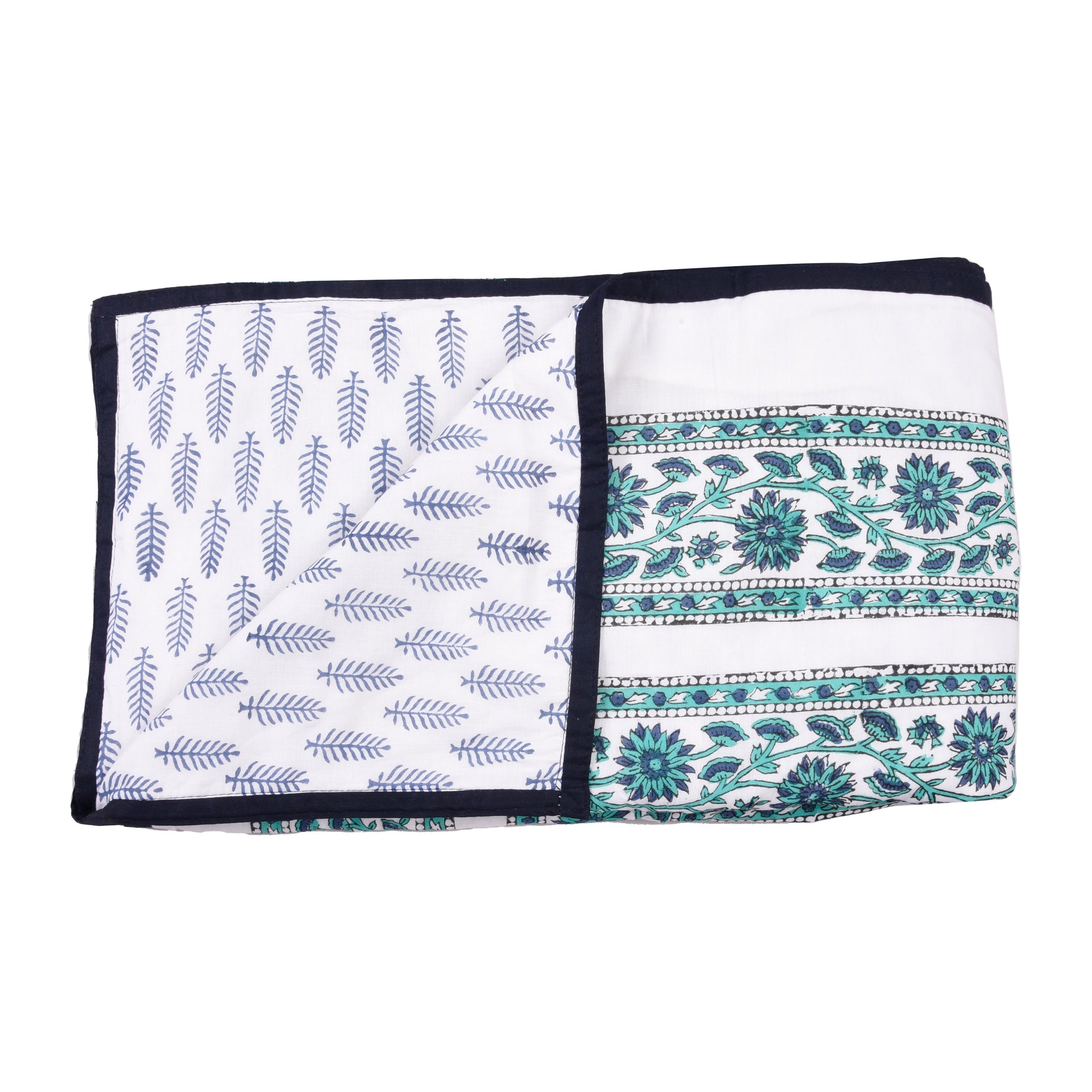 Cotton Blanket - Single Dohar ( 60 x 90 Inches) Blue Green Floral-N