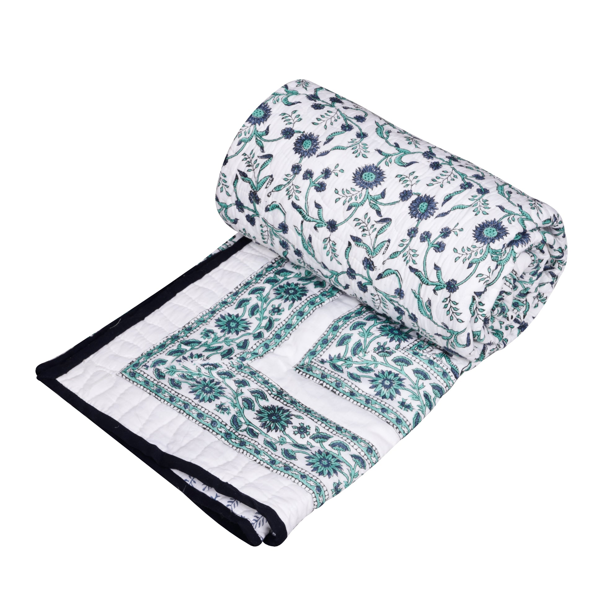 Single bed pure cotton quilted lightweight hand printed blanket (Duvet / comforter 60 x 90 Inches)