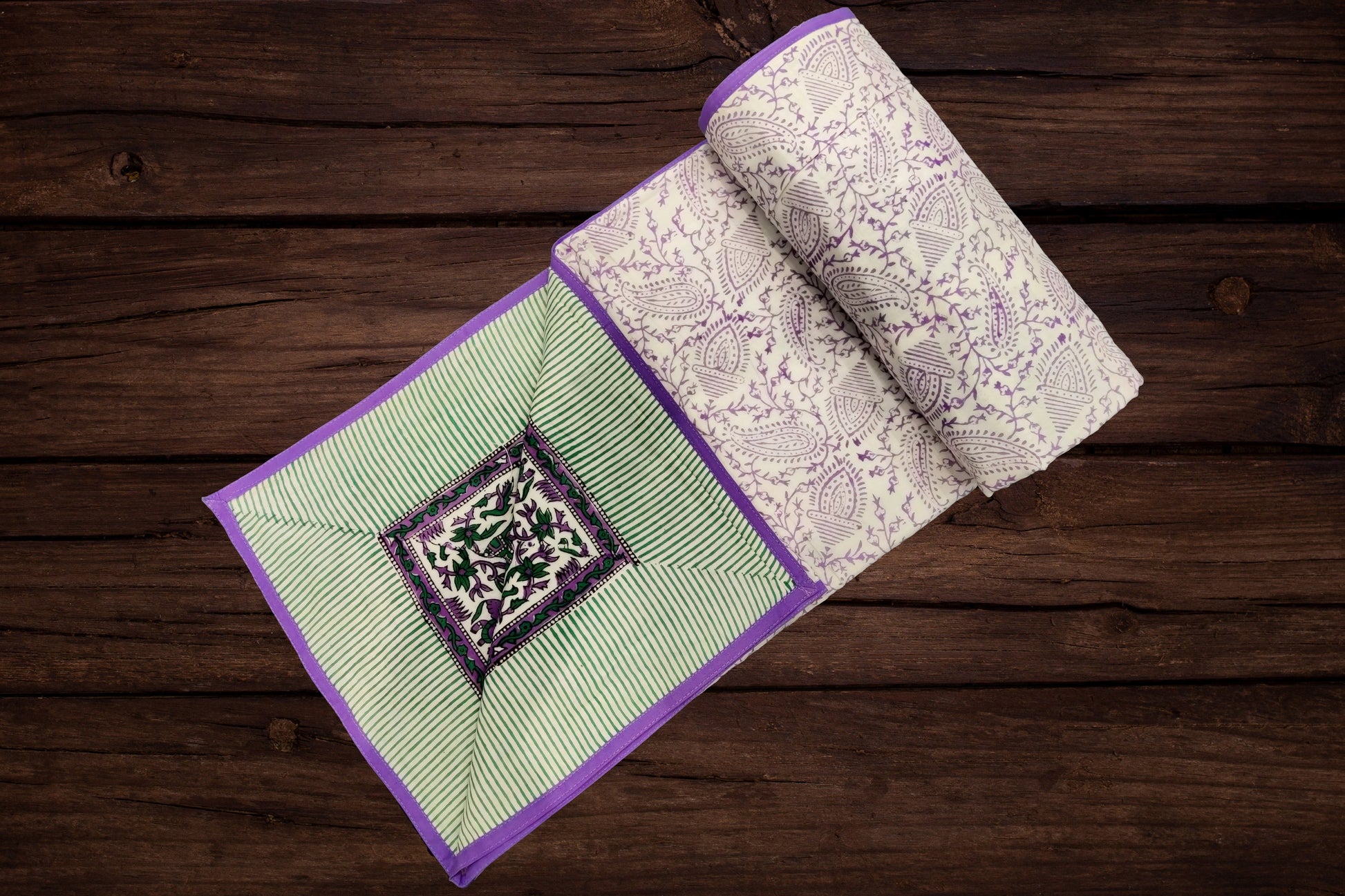 - It features a trendy hand block print, that will make it a instant favourite for any modern home, moreover it is made of cotton along with 3 layers of muslin/cotton stitched together to give it smooth finish ideal to be used as summer or mid winter blanket. It gets softer with every wash.