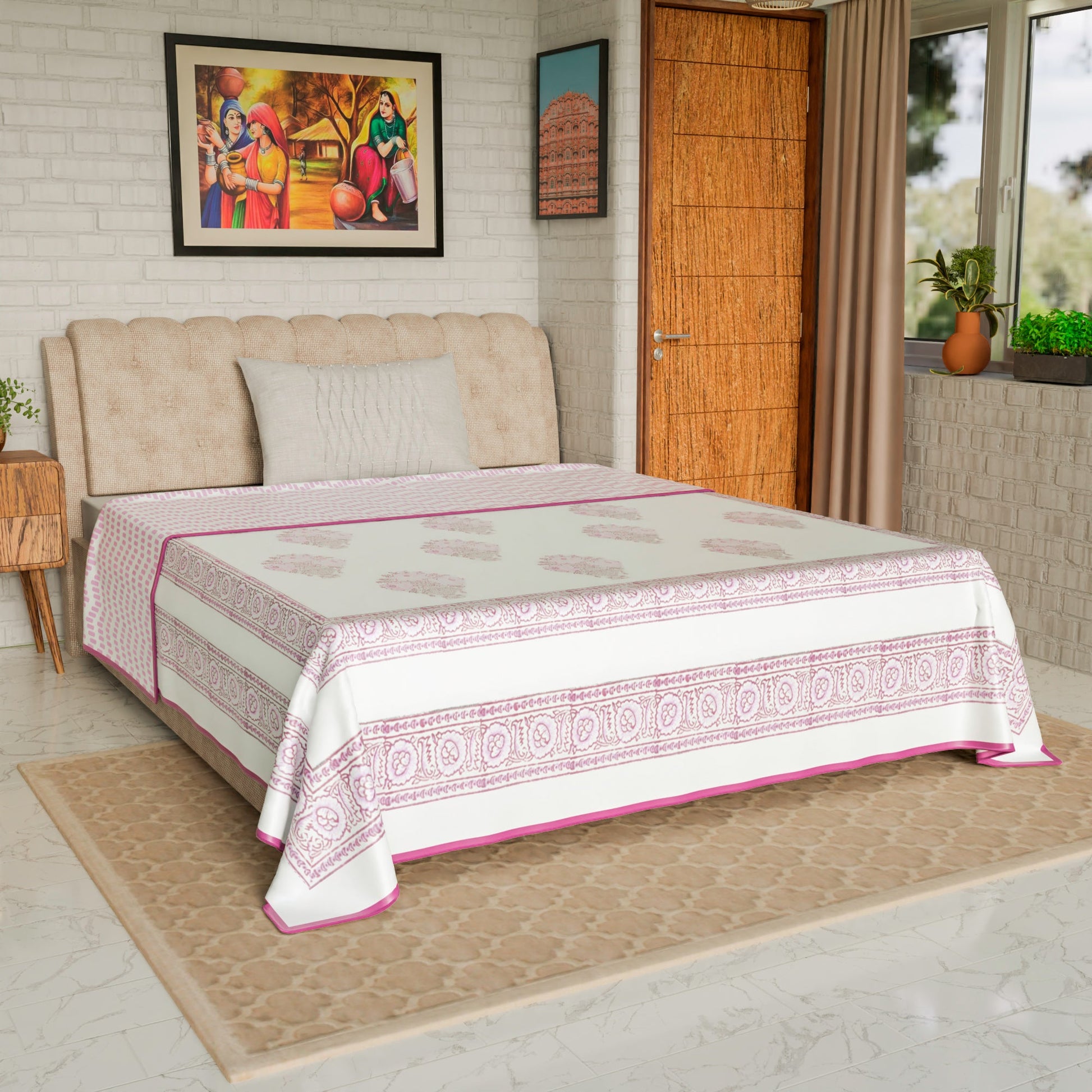 - Blanket single bed: (60 X 90 Inches) – Pure cotton A/C Dohar - made by hand block printing process.