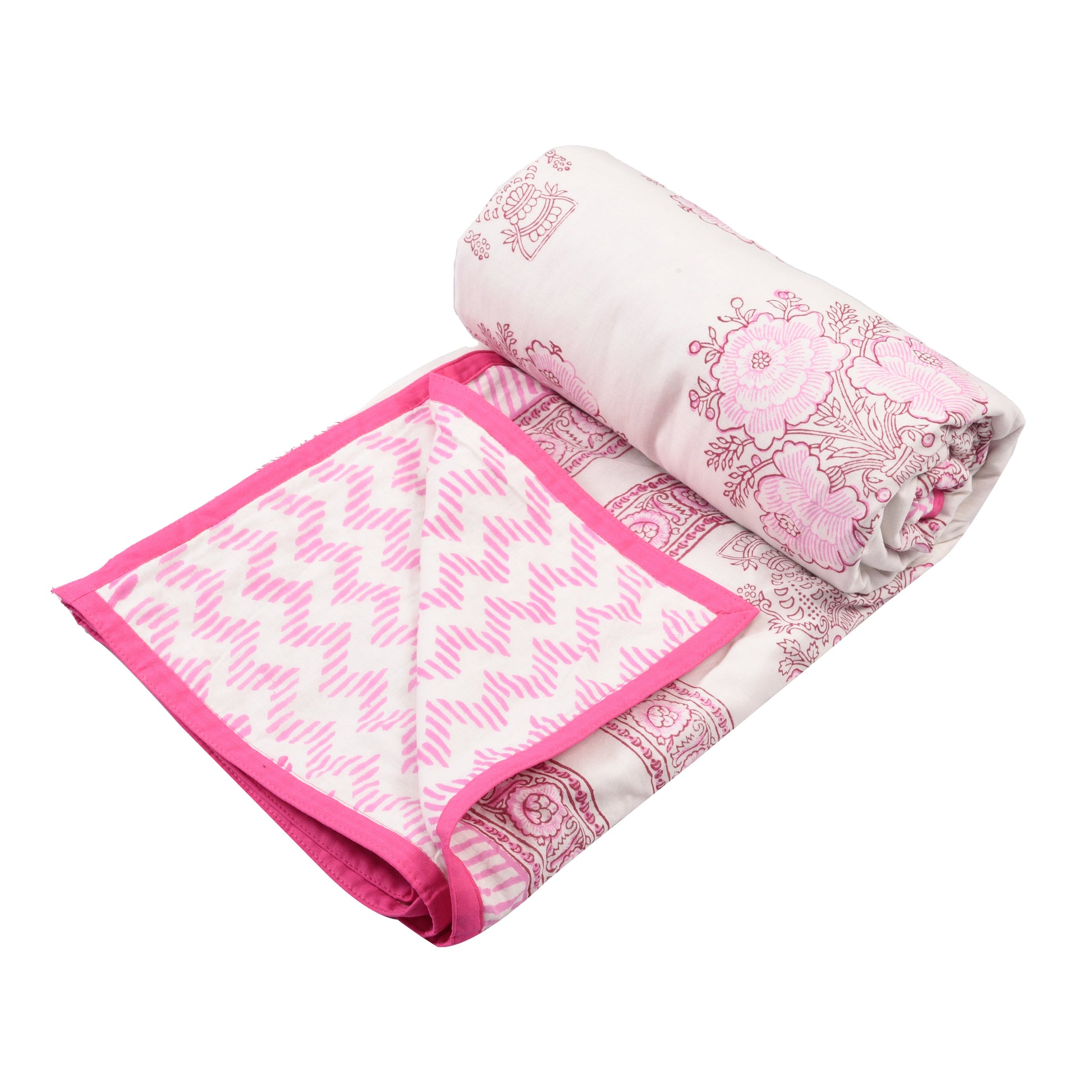 - These pure cotton blankets (Jaipuri Dohar) are reversible and can be used from both sides in summers/ mild winters or in air conditioner (AC Blanket). These cotton dohar are different from machine printed double bed blankets and use pure malmal cotton material which is very soft and generally used in handmade block printing process.