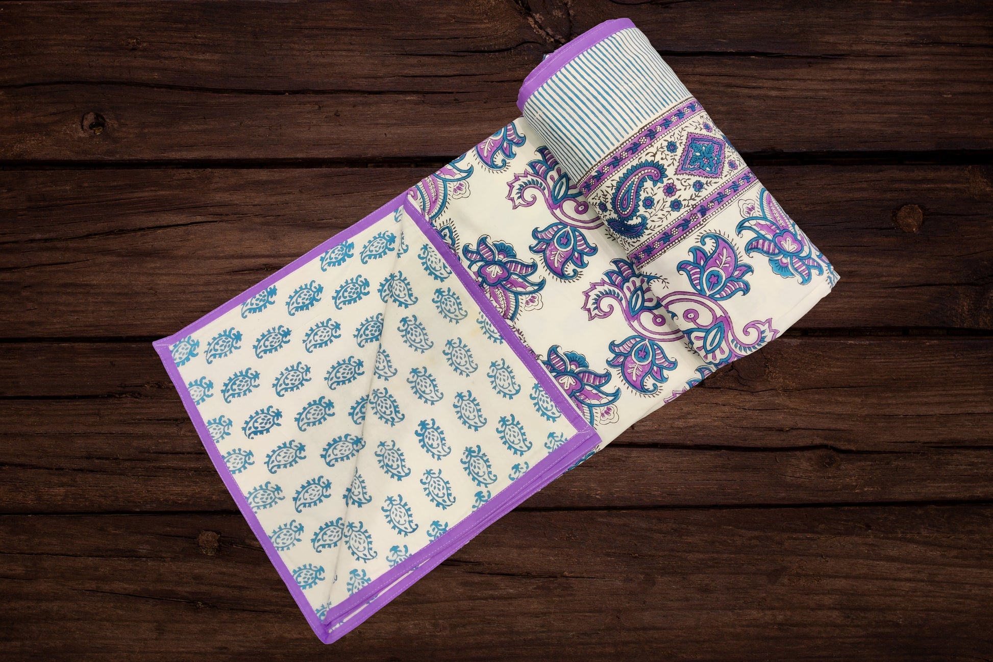 - These pure cotton blankets (Jaipuri Dohar) are reversible and can be used from both sides in summers/ mild winters or in air conditioner (AC Blanket). These cotton dohar are different from machine printed double bed blankets and use pure malmal cotton material which is very soft and generally used in handmade block printing process.
