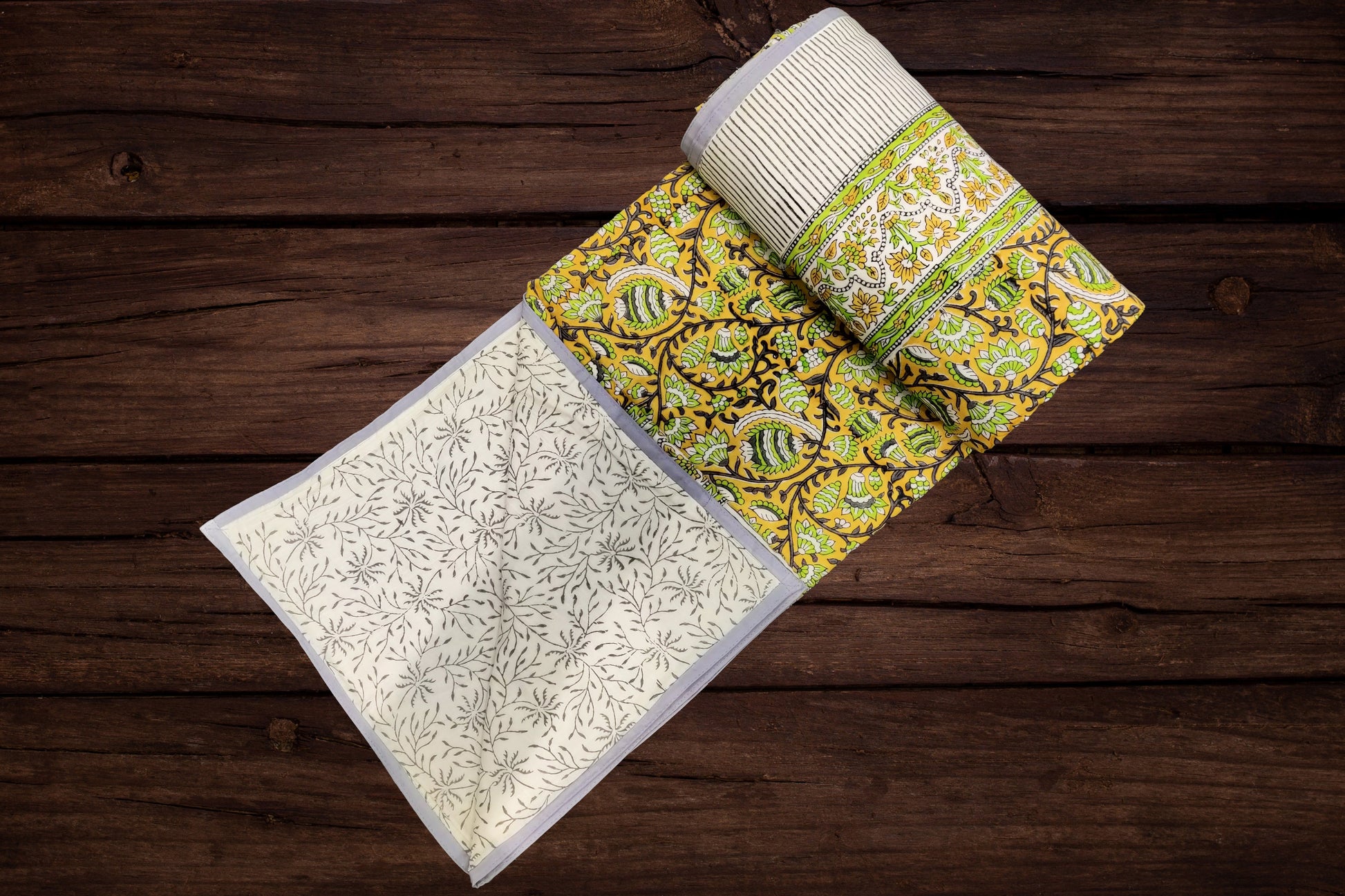 Cotton Blanket - Single Dohar ( 60 x 90 Inches) Yellow Black floral
